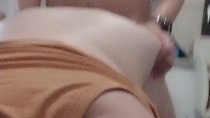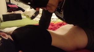 Rubber dildo riding from behind